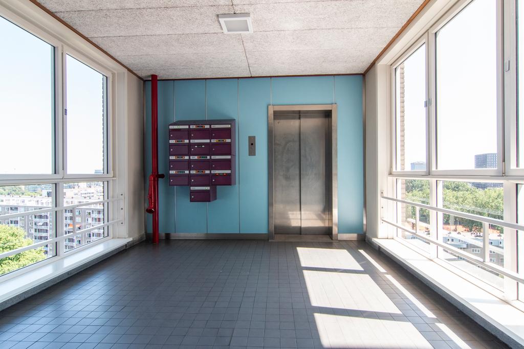 The apartment is located on the 11th floor of a well-maintained apartment complex situated along the increasingly popular Burgemeester Hogguerstraat with elevator.