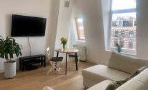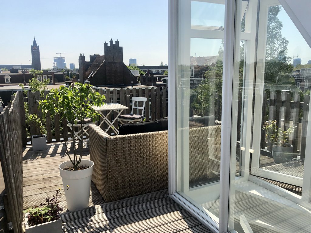 Bright and comfortable 2 bedroom top floor apartment including large sunny roof terrace with great views in the heart of the lively De Pijp neighborhood with a stunning energy rating A+. This unfurnished apartment is recently renovated and very well laid out with a charming living area and open kitchen with lots of natural light and high ceilings.
