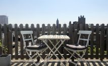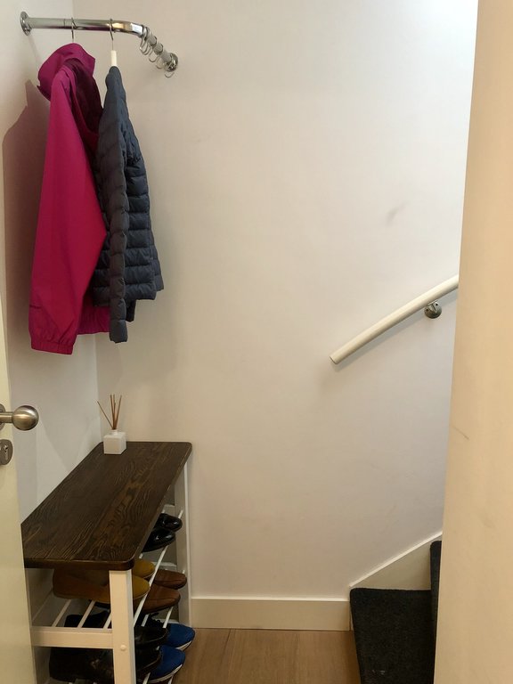 The stairs from the living room lead to a large terrace with fantastic open views over the city. The entire apartment has oak wooden floors and double-glazing, and is very quiet.