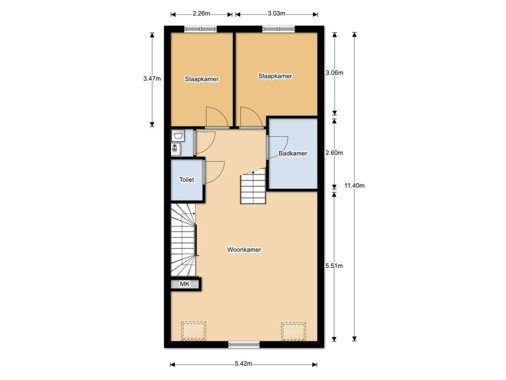 – Approx. 45 m2 living space (Not NEN 2580 measured)