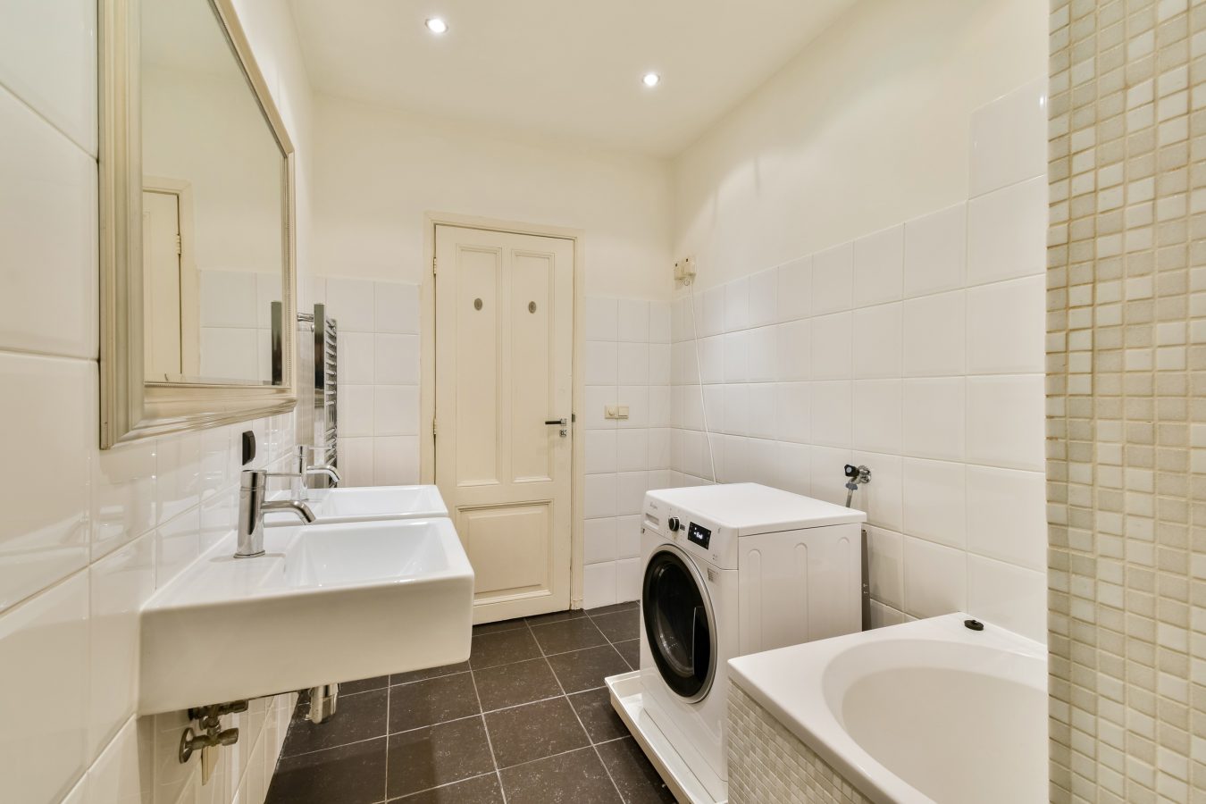 Communal stairs leads you to the second floor Situated on the second floor with nice oak wooden floors throughout the whole apartment. Bright living with 2 big windows and a French Balcony with opening doors overlooking the street side, open kitchen fully equipped with a fridge, separate freezer, oven, gas stove, dishwasher and extractor hood. At the back you’ll find the master bedroom with opening doors to the balcony, second (smaller) bedroom at the back as well. Spacious bathroom with bath tub, separate shower, double sink and washing machine included. Separate toilet in the hall and some extra storage space.