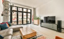 This fully furnished apartment has a very practical and optimal laid out and is equipped with; steel patio doors, high ceilings, underfloor heating, luxurious open kitchen including island, wooden floor, stunning spa bathroom with freestanding bath, 2 bedrooms, fitted wardrobes, sky light and bright patio.