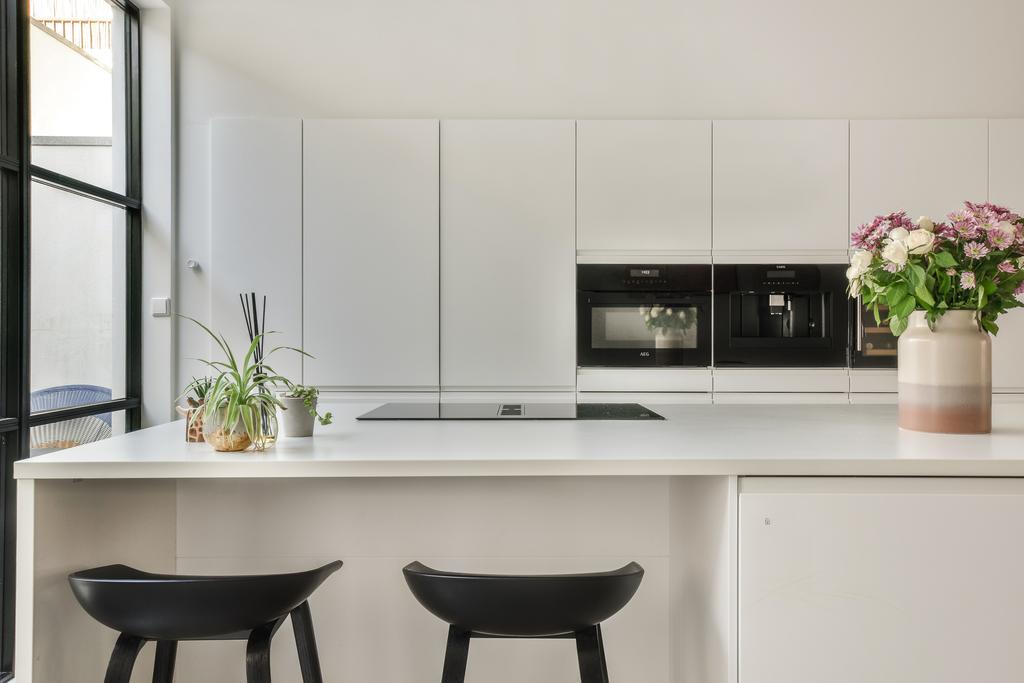 Private entrance, bright open plan living area with an amazing ceiling height of more than 3 meters, side hallway with separate toilet and laundry area with washer and dryer, open kitchen with a beautiful cooking island equipped with AEG combination microwave, AEG coffee machine, Quooker (boiled water from tap), dishwasher, fridge / freezer and a climate cabinet for wine, 4-burner induction plate with intrigued extraction.