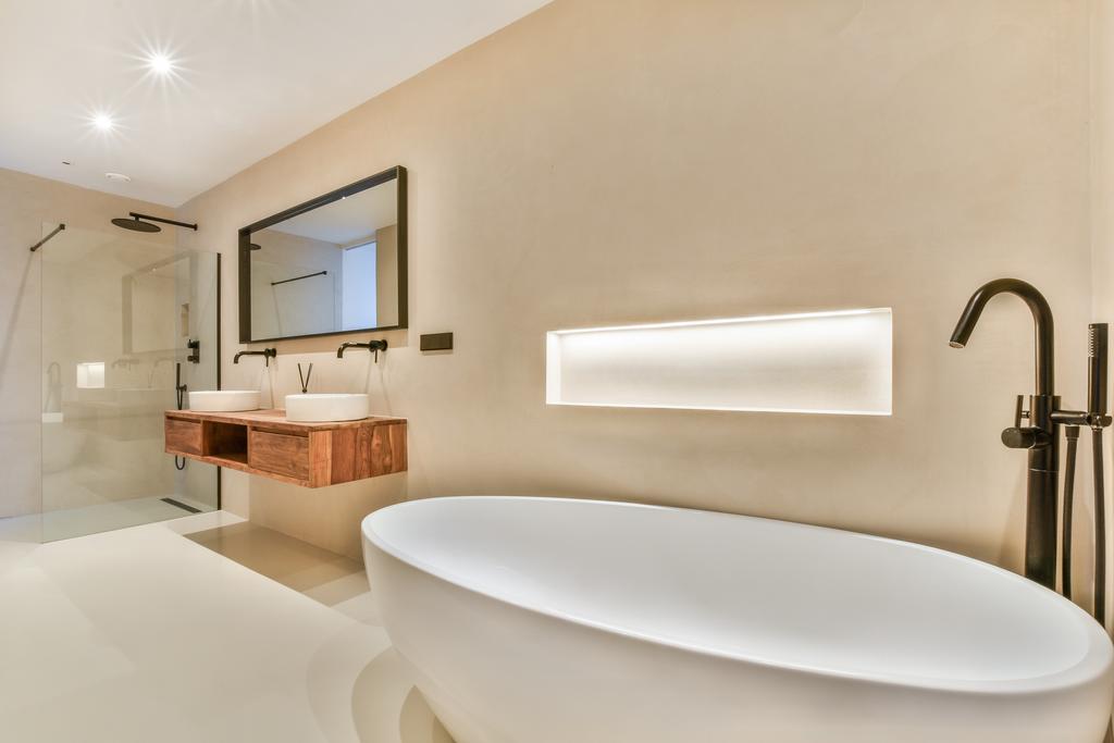 At the quiet rear side the master bedroom and the second bedroom, equipped both with airconditioning and both of which provide access to the luxuriously finished bathroom equipped with a large freestanding bath, spacious walk-in rain shower, a double sink and recessed spotlights. The master bedroom is directly adjacent to the patio. The second bedroom has a skylight and a fitted wardrobe. In the hall is a beautifully custom built-in closet that provides extra storage options.
