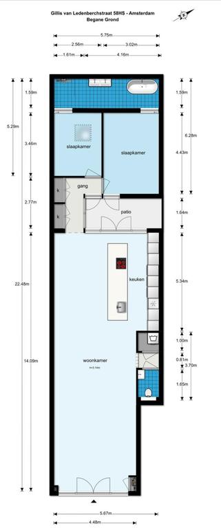This fully furnished apartment has a very practical and optimal laid out and is equipped with; steel patio doors, high ceilings, underfloor heating, luxurious open kitchen including island, wooden floor, stunning spa bathroom with freestanding bath, 2 bedrooms, fitted wardrobes, sky light and bright patio.
