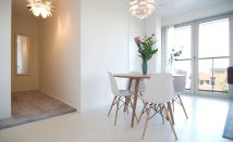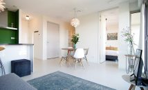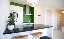 This apartment have been designed with an eye for detail in a colorful, playful style, using beautiful materials. It features floor heating and cooling, epoxy flooring, a sunny balcony, quality kitchen and bathroom, all new in 2019!