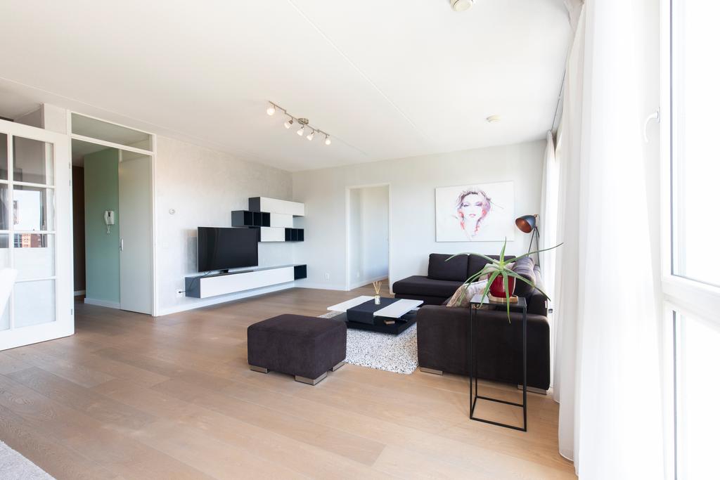 A beautiful 3-bedroom apartment of about 109 m2 surface area with panoramic views over Amsterdam, sunny spacious balcony/terrace and private parking.