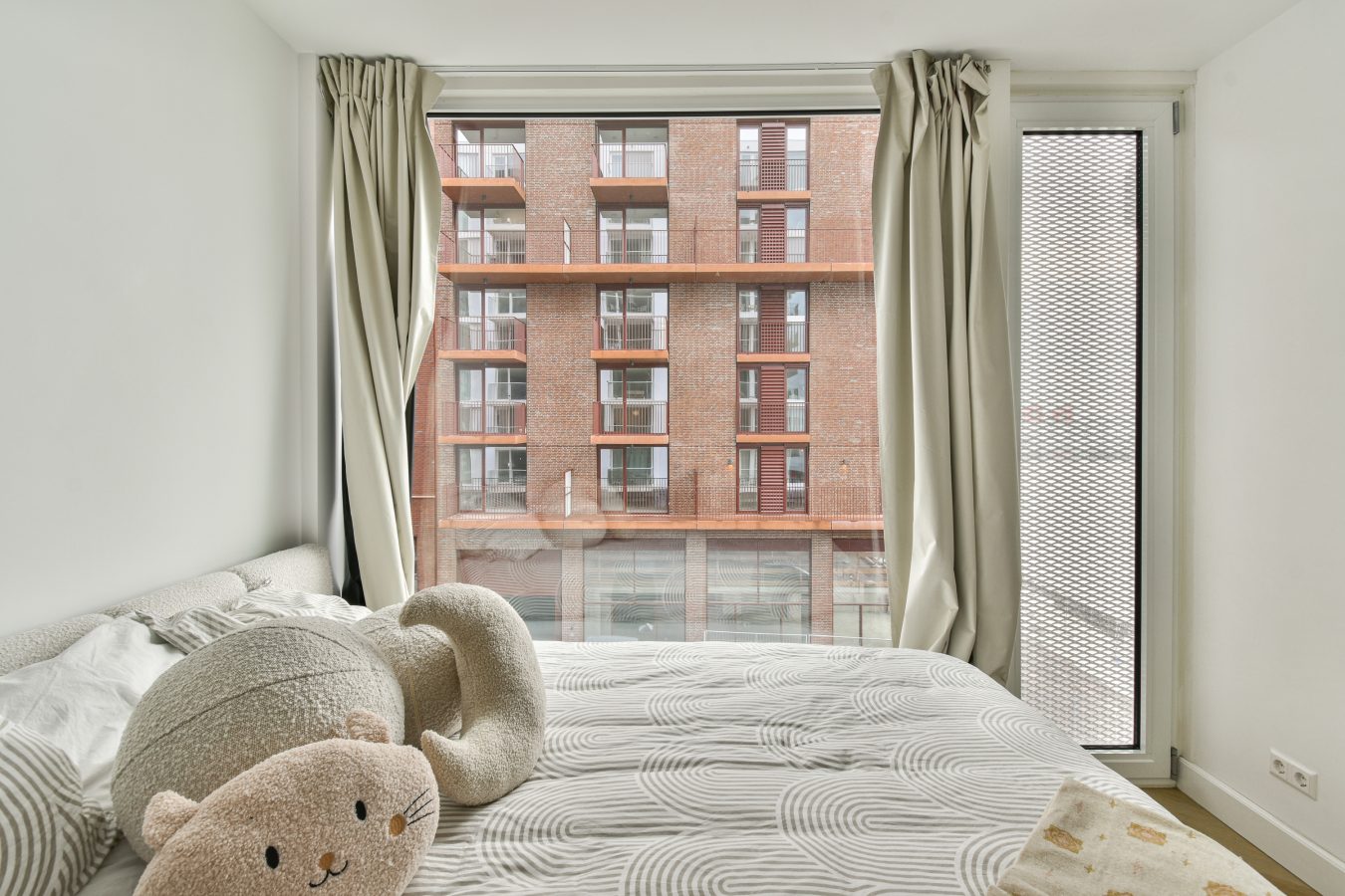 The bedroom with a view is situated next to the living room.