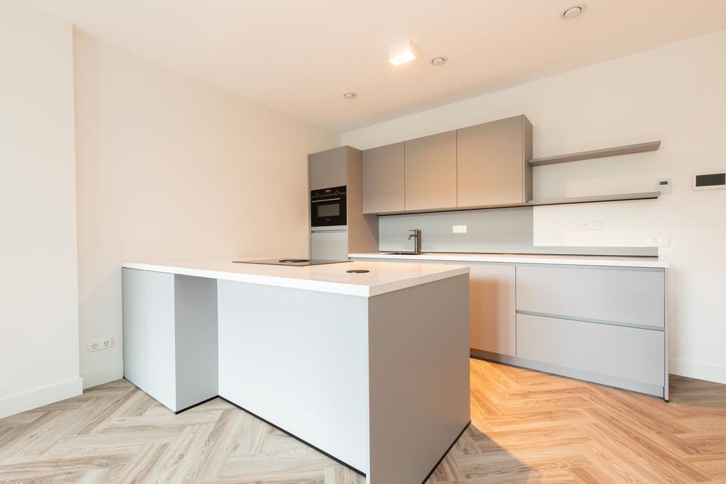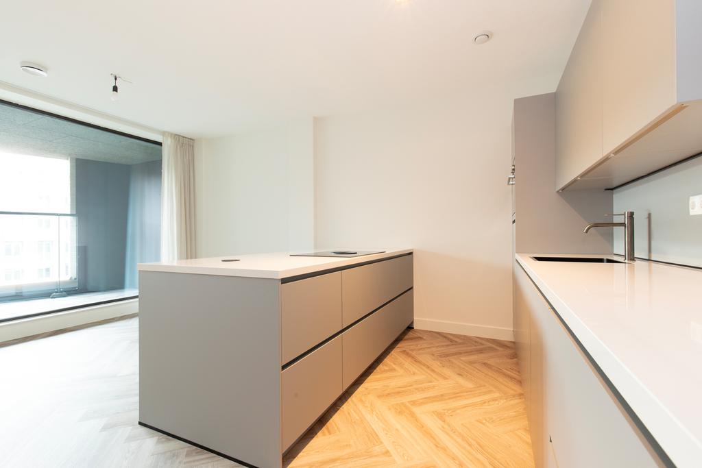 Stunning double apartment of approx 201 m2 for rent in the amazing VERTICAL building (2022) This unfurnished apartment is equipped with 3 bedrooms, 2 bathrooms (1 with bath), 1 home office, balcony, luxurious kitchen including island, a spacious living room of almost 70 m2, PVC floor heated and cooled floor throughout. All brand new with an energy label A++.