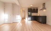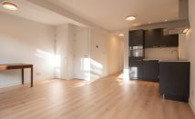 Entrance is on the first floor. You enter a hallway with the living room with open plan kitchen with all appliances to the back of the apartment facing the inner courtyards.
