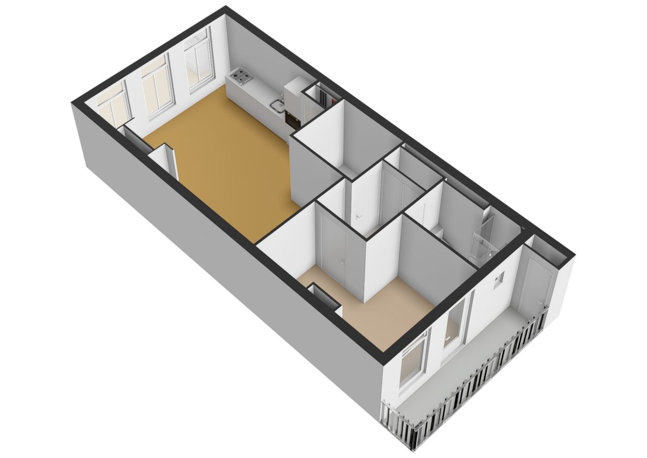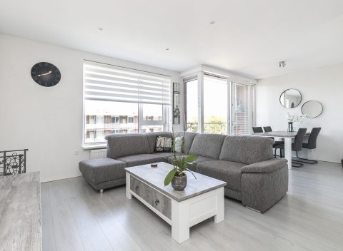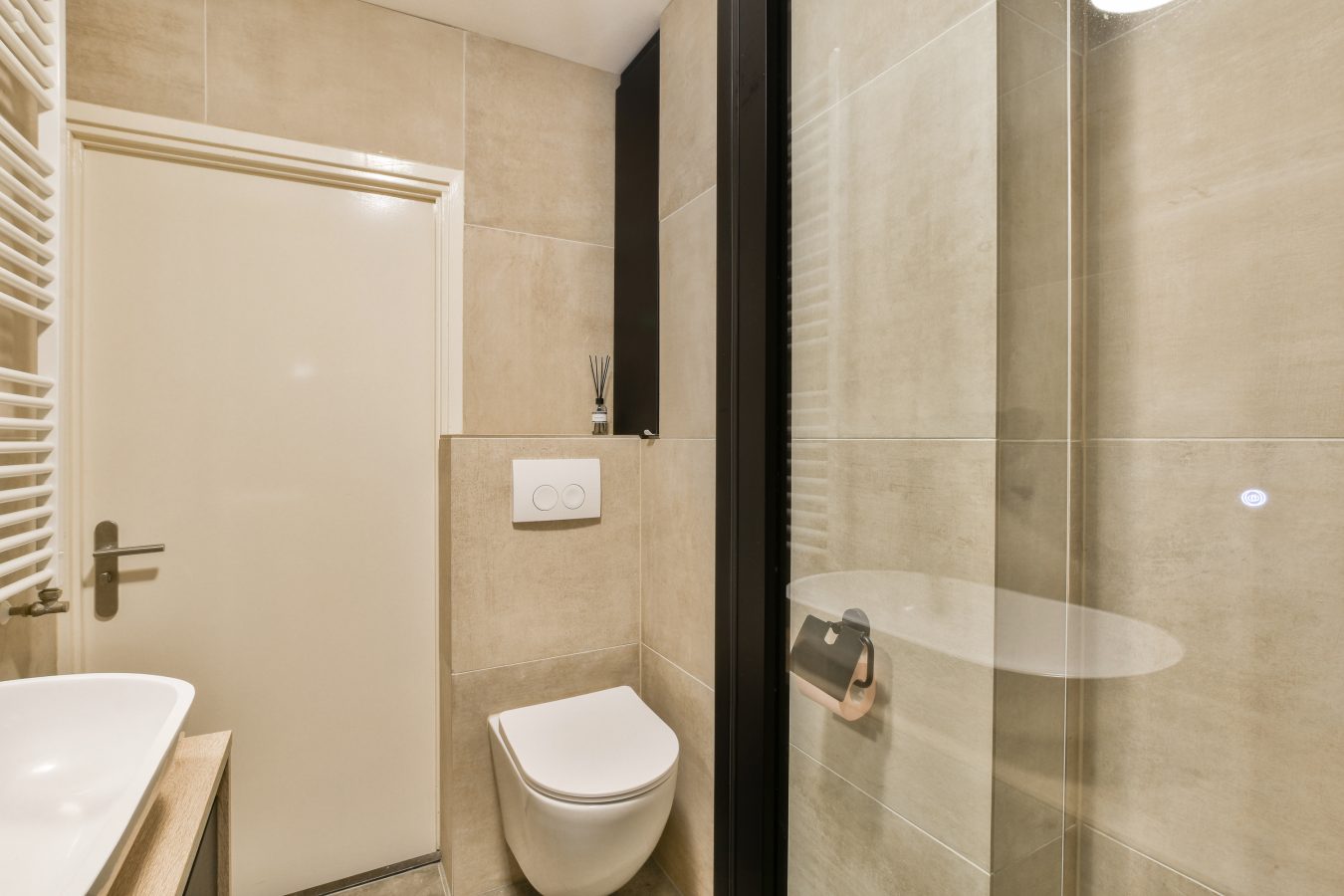 Aan de achterzijde vind je een ruime slaapkamer met genoeg plek voor een groot tweepersoonsbed en een kledingkast. Vanuit de slaapkamer heb je directe toegang tot het zonnige balkon, ideaal om van het zonnetje te genieten. De luxe badkamer is voorzien van een inloopdouche, wastafel met meubel, toilet en handdoek radiator.