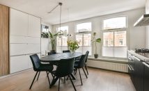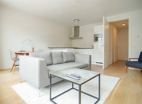The apartment is situated on the third floor and features a spacious, bright living room thanks to three large windows offering views over the always lively Albert Cuyp Market. The open kitchen is fully equipped with all essential built-in appliances, including a 4-burner gas stove, combi-oven, dishwasher and fridge with freezer compartment. There is also plenty of room for a large dining table.