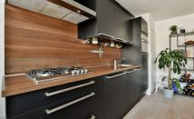 There is also ample space in the hallway for cabinets, and it is equipped with a built-in freezer and a washer-dryer combination.