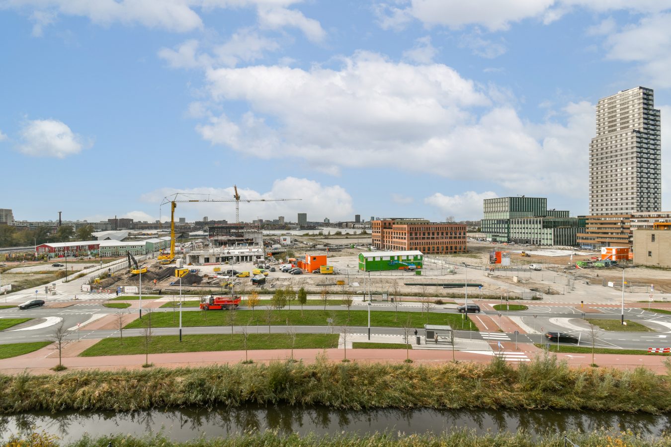 In the Sportheldenbuurt neighborhood, the iconic Three Silos are currently being transformed into a lively community hub with restaurants, a cinema, sports facilities, and a rooftop garden offering panoramic views over the city. The island also features a large park with the Mega Urban Sports Zone, which includes a skate park, padel courts, sports fields, and playgrounds.