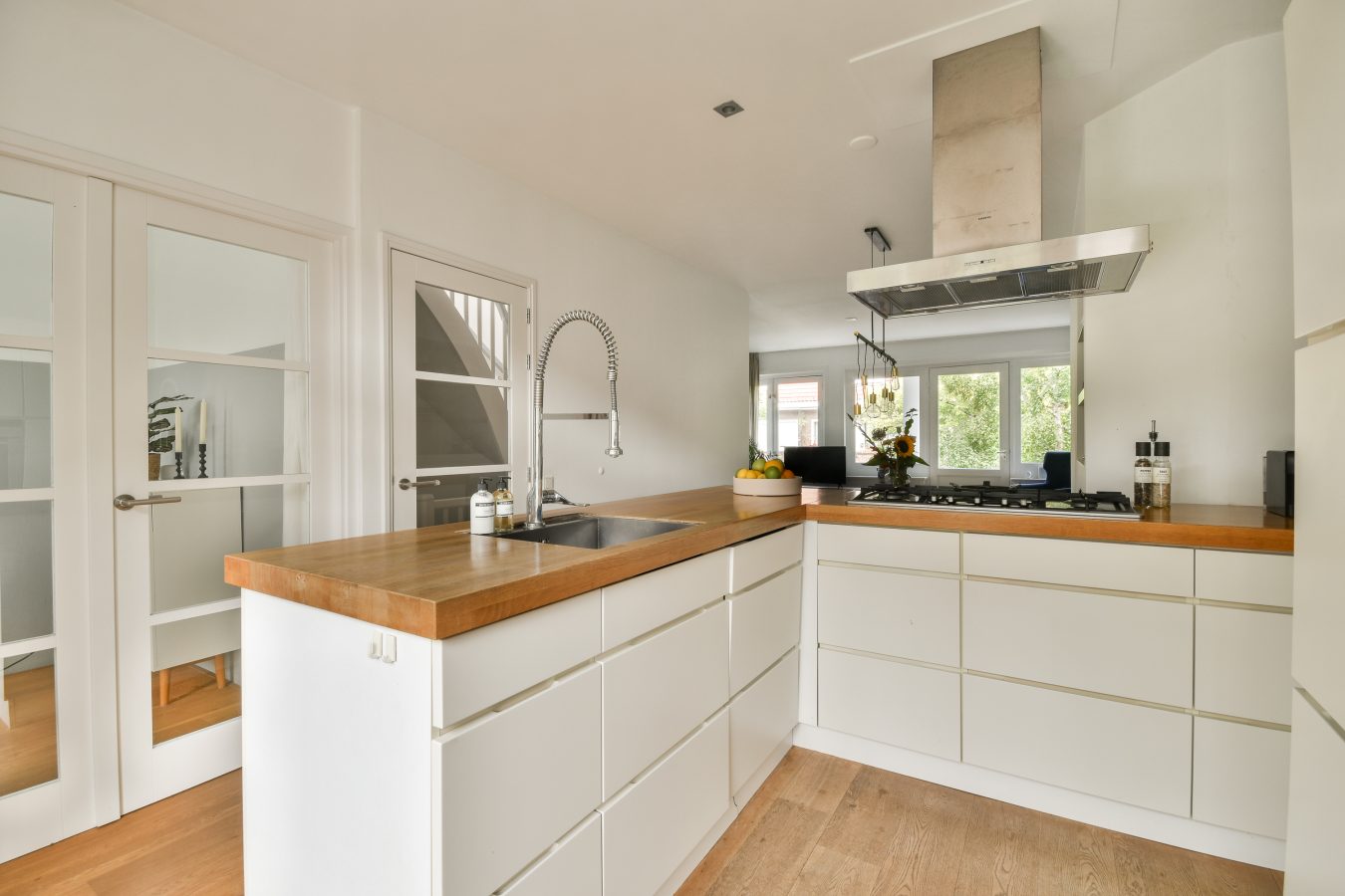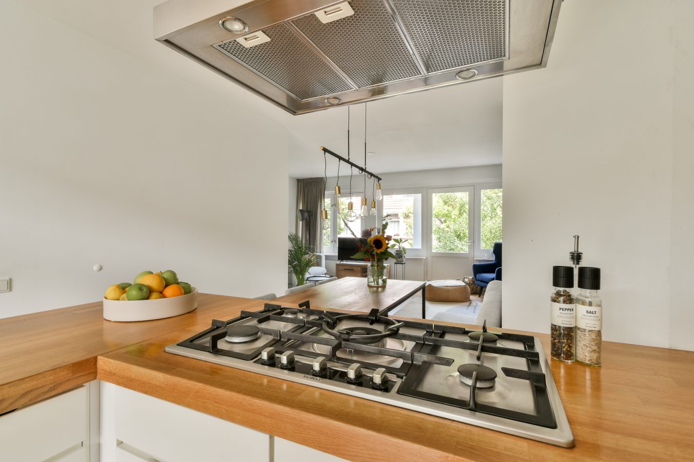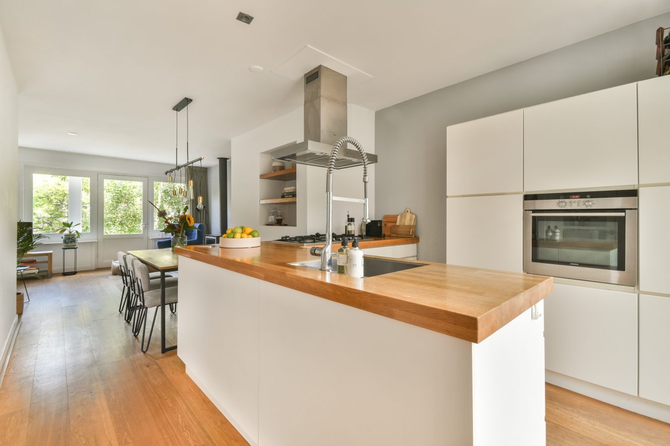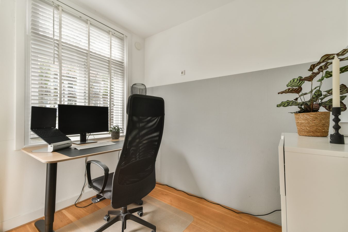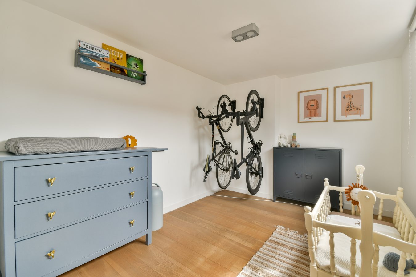 royale en lichte doorzon living met sfeervolle houthaard en een open keuken voorzien van diverse inbouwapparatuur en een gezellige bar. Vanuit de woonkamer stapt u via de openslaande deuren zo het zonnige balkon op het zuidwesten op. Aan de voorzijde van de woonkamer bevindt zich een tweede balkon, met ochtendzon. Aansluitend bevindt zich een afsluitbare home-office of speelkamer van ca. 6 m² – ideaal voor werken aan huis of als extra speelruimte.