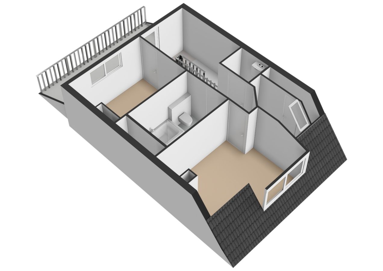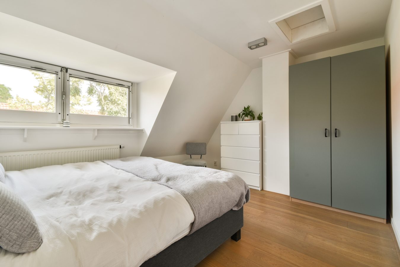 twee ruime slaapkamers en een kleinere kamer, thans in gebruik als kastenkamer maar eenvoudig in te richten als kinderkamer. Hier bevindt zich tevens het fraaie dakterras van 13 m², geheel vernieuwd in 2025, waar u in alle rust kunt genieten van de zon.