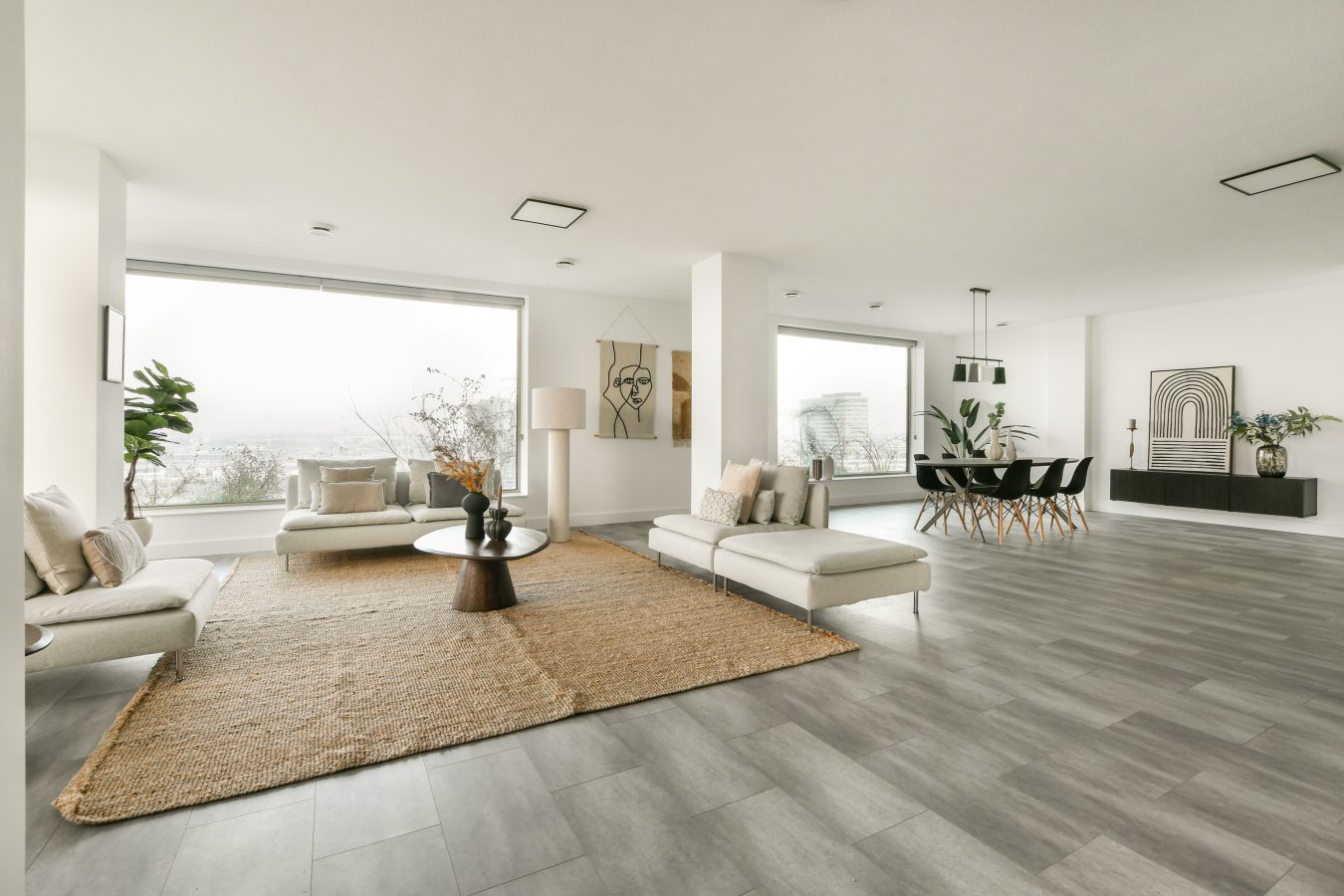 The apartment features a generous living room of approximately 70 m², a luxurious open kitchen, two spacious bedrooms — both with access to the loggia — and a modern bathroom with a nearly 3-meter-deep walk-in shower, a bathtub, and a second toilet. Additionally, there is a separate guest toilet, two practical storage rooms, and a spacious laundry/storage area with a washing machine and dryer. The PVC flooring with underfloor heating and cooling, combined with the integrated smart lighting system, ensures optimal living comfort.