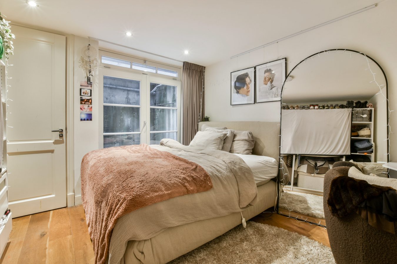 Located on the beloved Recht Boomssloot, one of the most characteristic canals in the historic Lastage district, this unique double ground-floor apartment is housed in a listed monument dating back to 1645. This house, steeped in history, was meticulously and thoroughly renovated in 2018, including a new foundation. Here, the authenticity of the 17th century blends seamlessly with the comfort and quality of contemporary living.