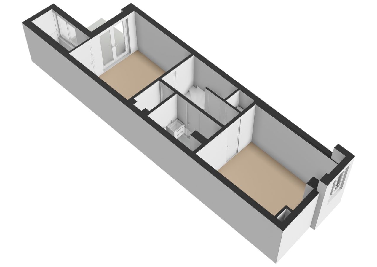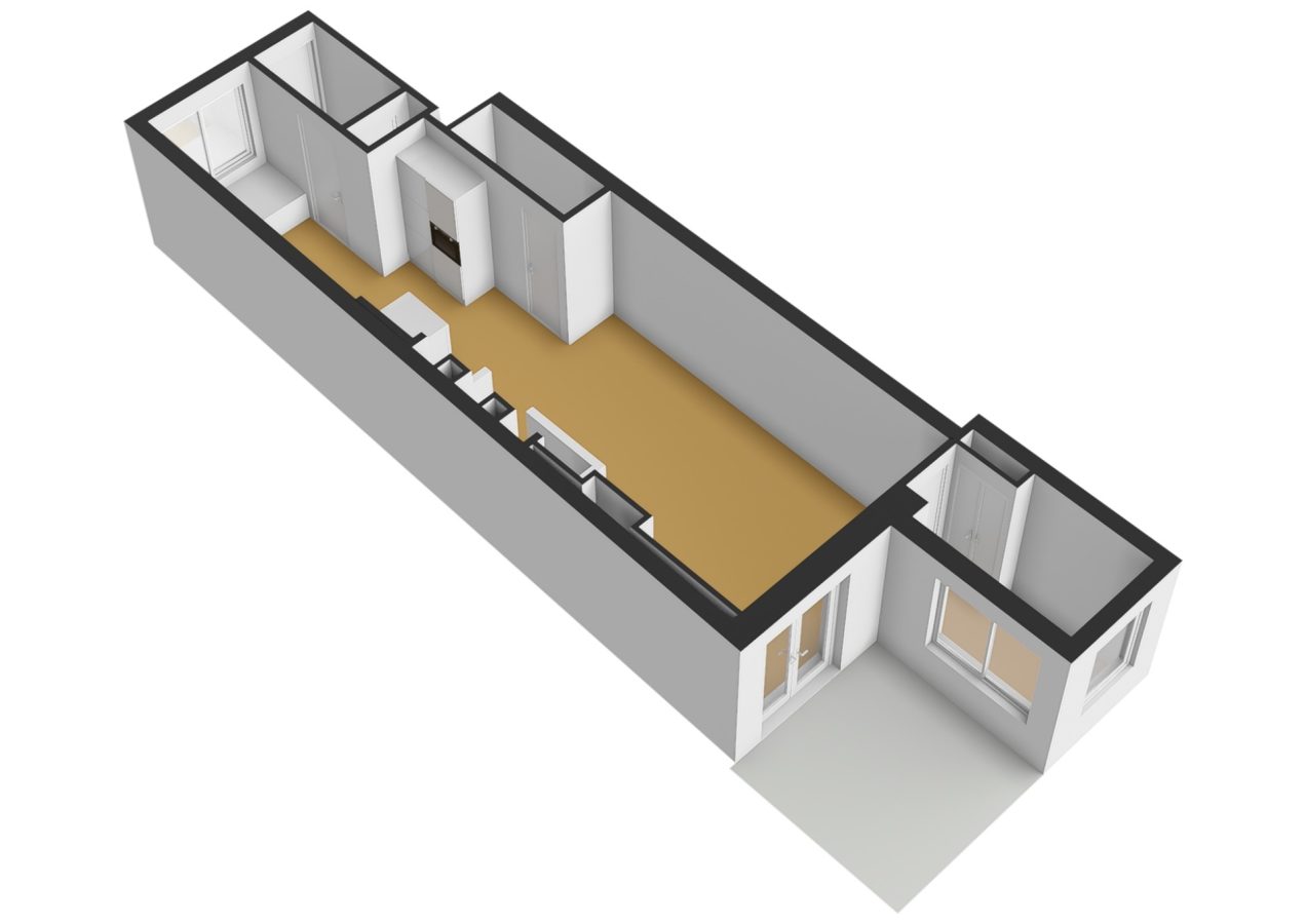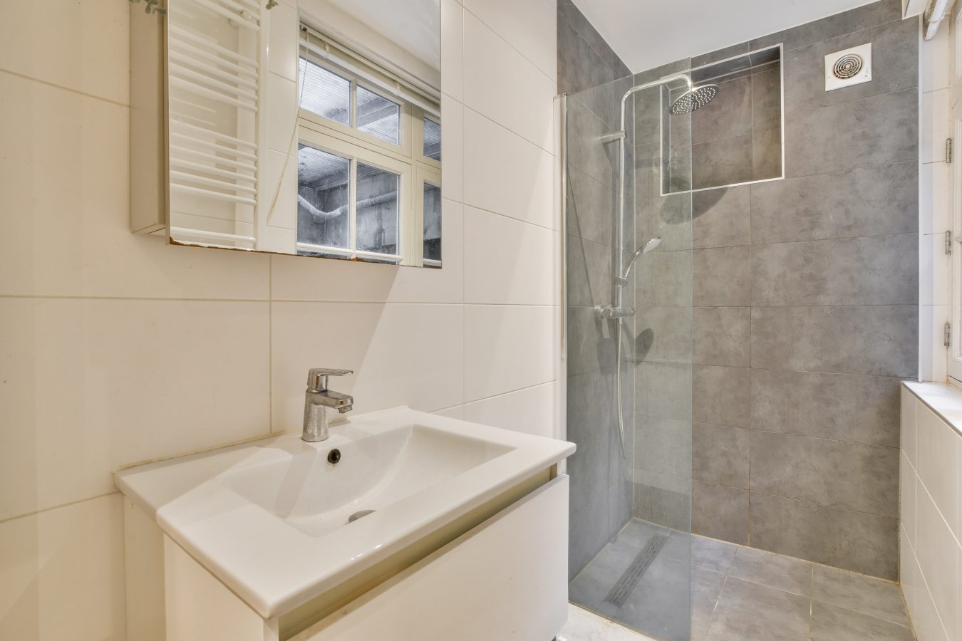 Aan de achterzijde ligt een stille werkkamer, grenzend aan een privé buitenruimte met openslaande deuren – een plek die zich perfect leent voor thuiskantoor of een rustige plek om je even af te sonderen.