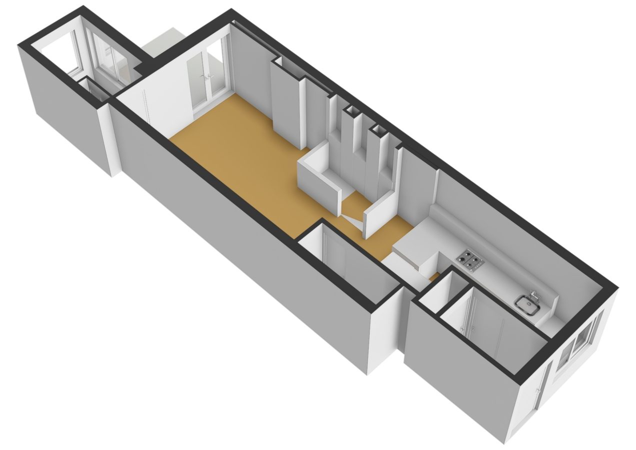 De woning beschikt over een eigen entree wat direct een gevoel van zelfstandigheid en privacy geeft. Op de beletage bevindt zich de ruime living met aan de voorzijde een open keuken en een fraai uitzicht over de gracht. De plafondbalken, hoge raampartijen en verfijnde afwerking zorgen voor een aangename ruimtelijkheid en een serene sfeer.