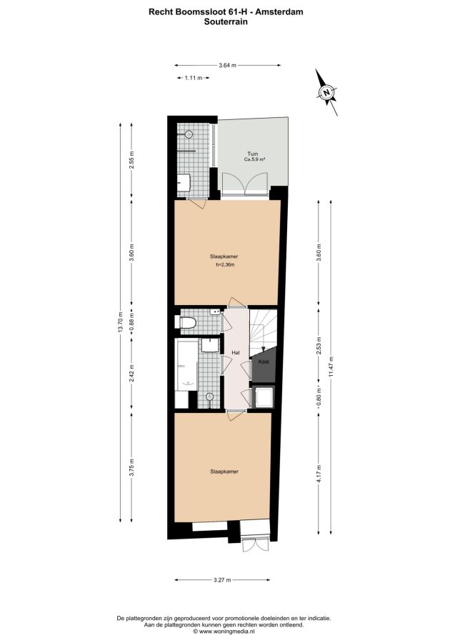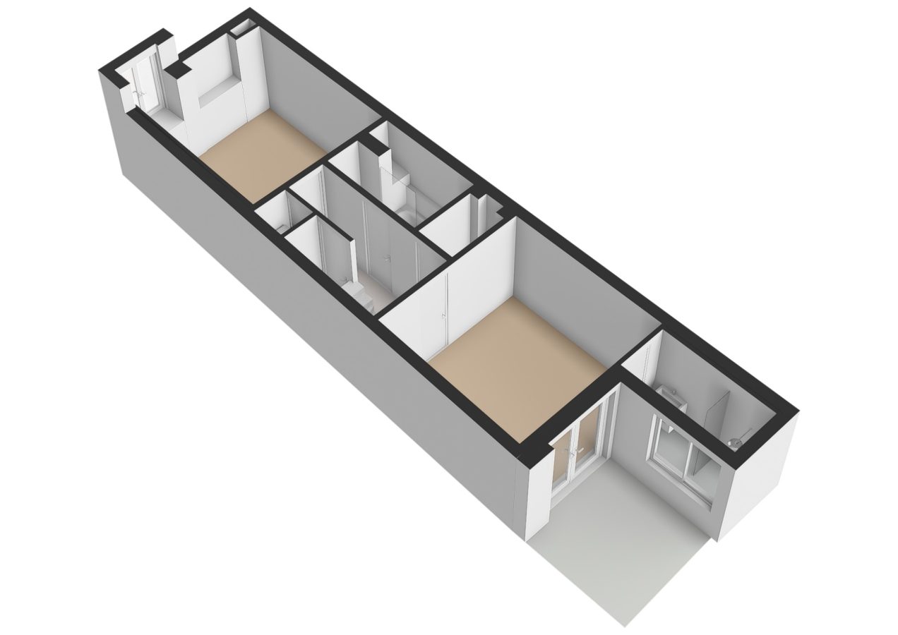 In het souterrain bevinden zich twee ruim bemeten slaapkamers en twee luxe badkamers. De hoofdbadkamer is voorzien van een ligbad, inloopdouche en wastafel, terwijl de tweede badkamer beschikt over een douche en wastafel. De slaapkamer aan de achterzijde biedt toegang tot een tweede, intieme buitenruimte met veel privacy.