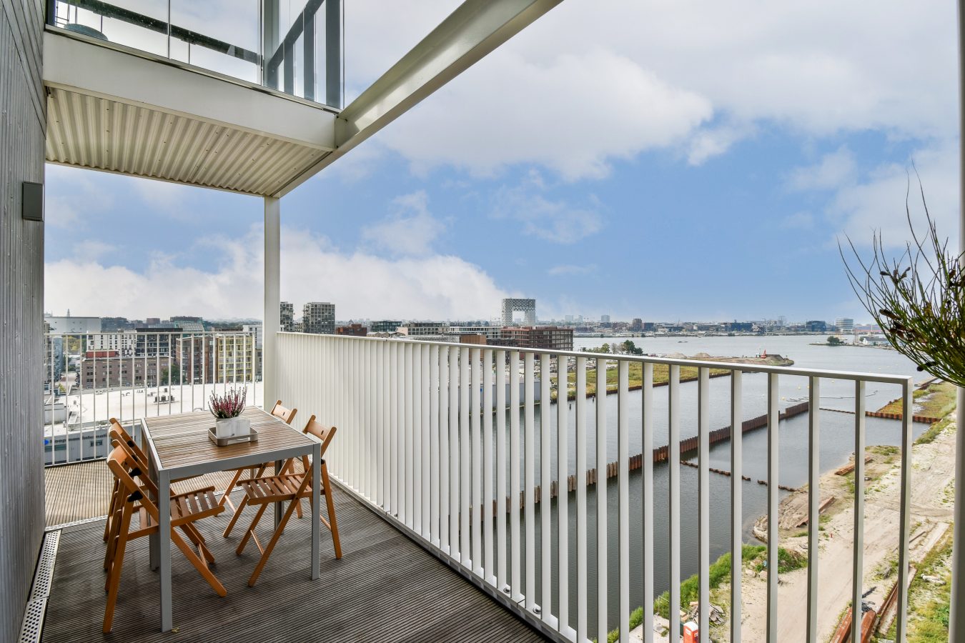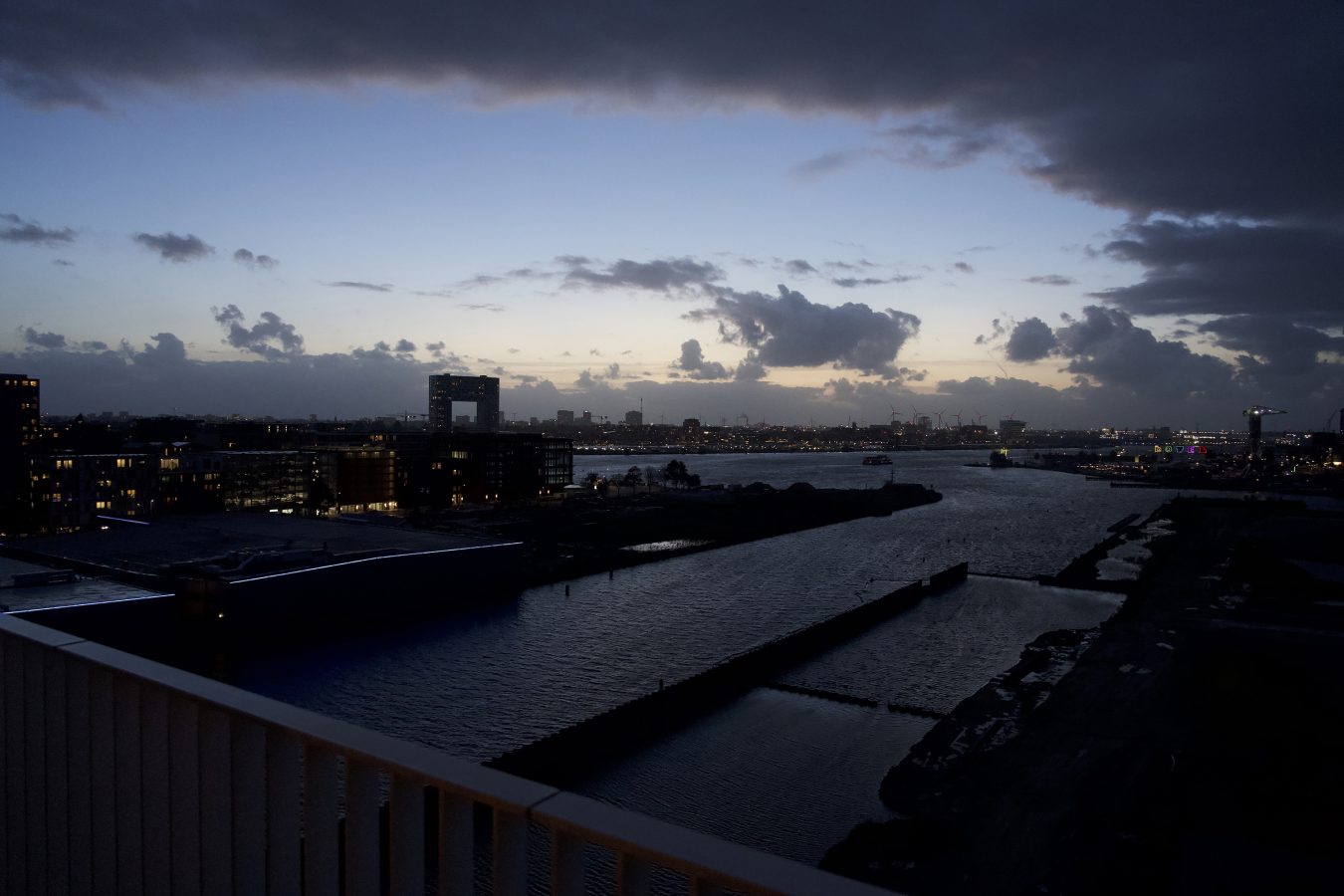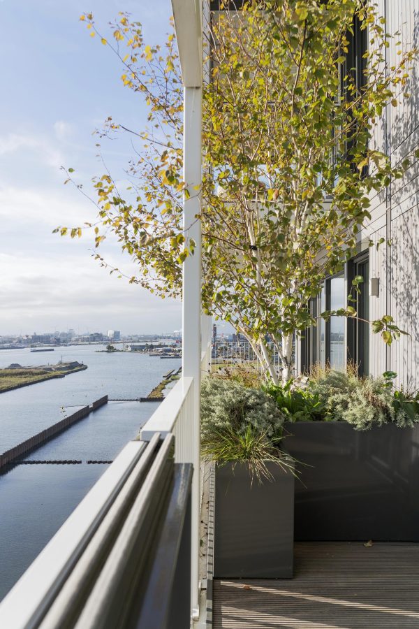 Situated at the rear of the building, the apartment enjoys panoramic views over the IJ river and the Amsterdam skyline, total privacy, no passing traffic and ideal sun exposure.