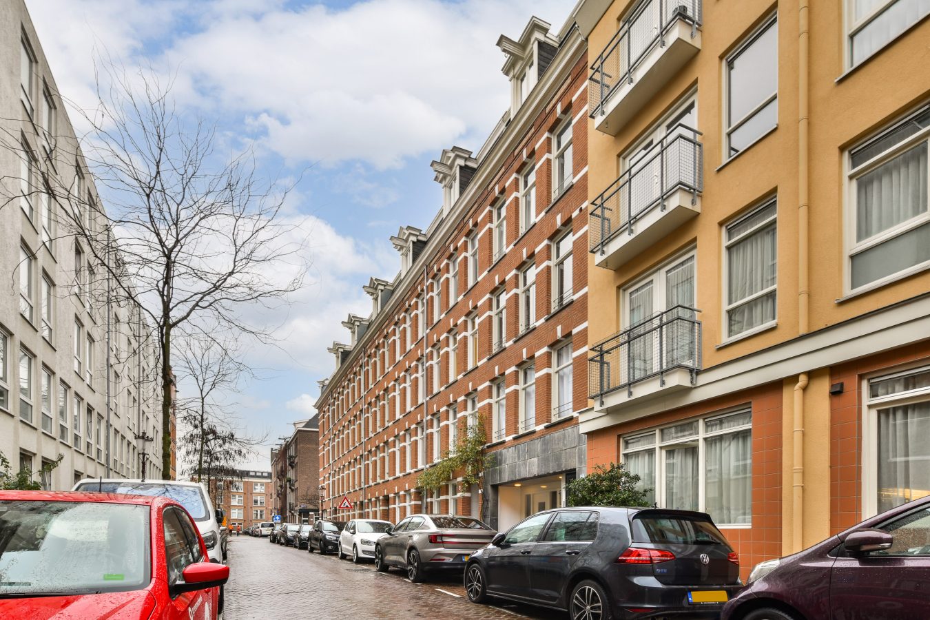 Discover this spacious and playfully designed maisonette of approximately 102 m² on Rustenburgerdwarsstraat, located in the heart of De Pijp. The apartment features 2 bedrooms, with the possibility to easily create a third bedroom, a large storage room, and a parking space. It is situated in a modern building from 1997, has an energy label A, and is located on freehold land. Thanks to the large windows, split-level layout, and bright living area, this is an exceptionally comfortable and inviting apartment.