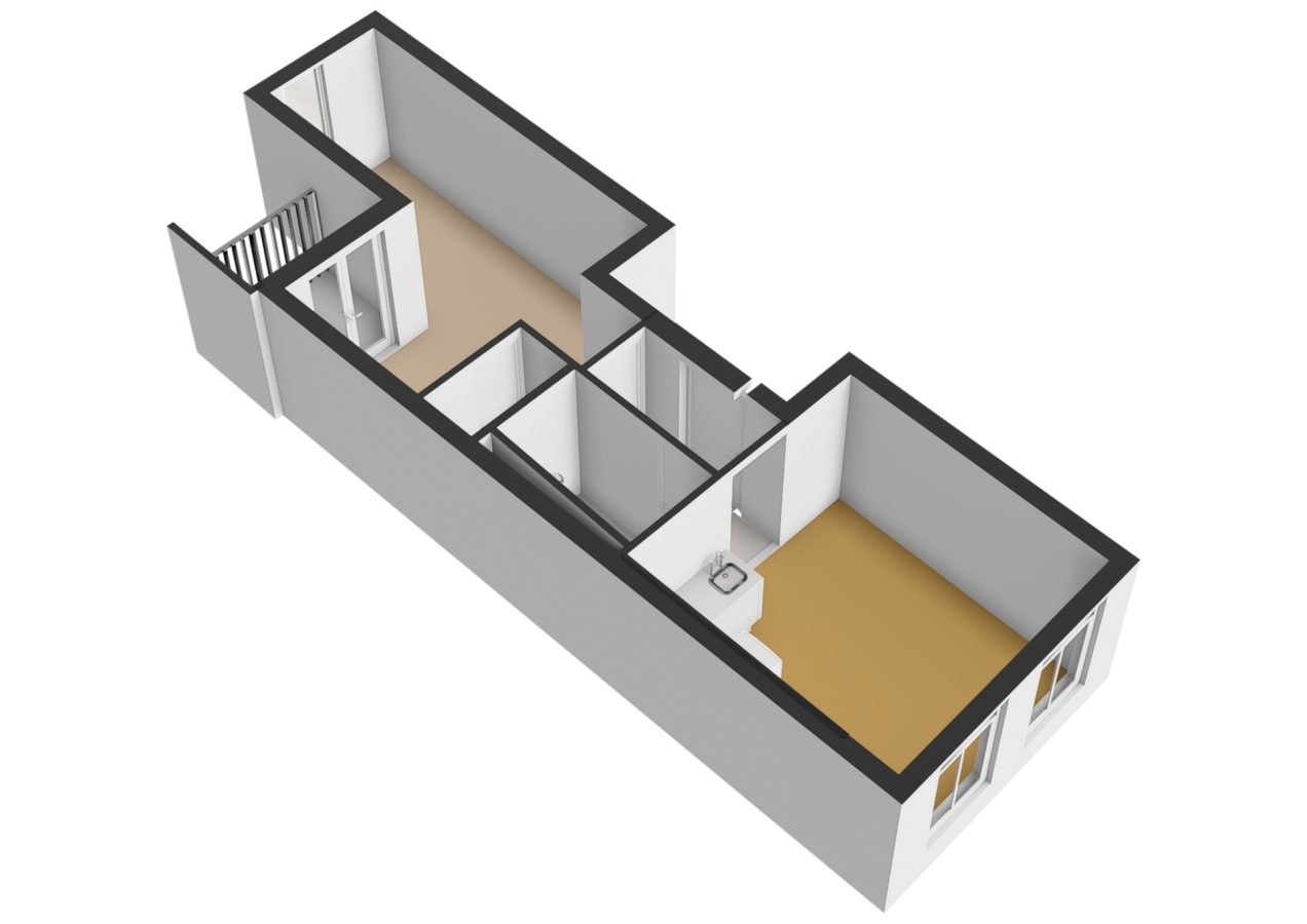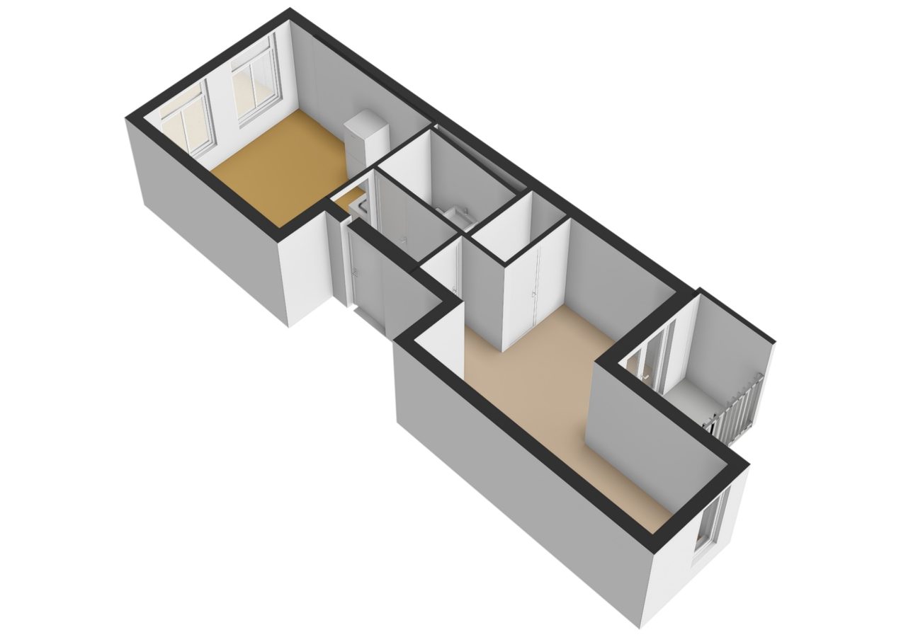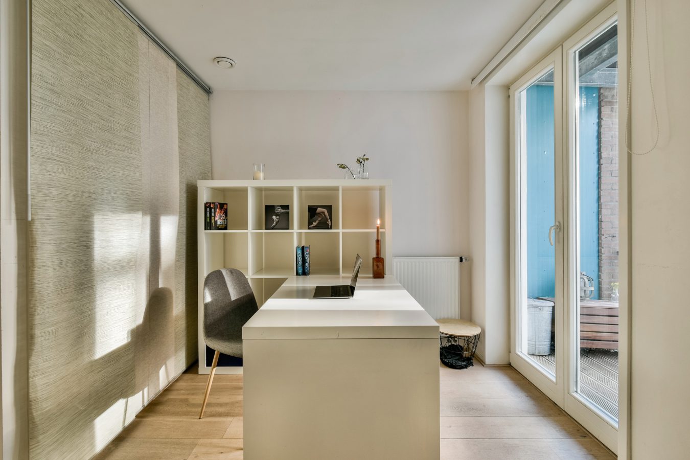 De relatief ruime slaapkamer biedt moeiteloos plaats aan een tweepersoonsbed, kastruimte én een bureau. In een afgeschermd deel van de kamer bevinden zich de CV-opstelling en de wasmachine-/drogeraansluitingen. Via openslaande deuren bereik je het balkon: een heerlijk beschut plekje waar je in alle rust kunt genieten van een kop koffie of een glas wijn.