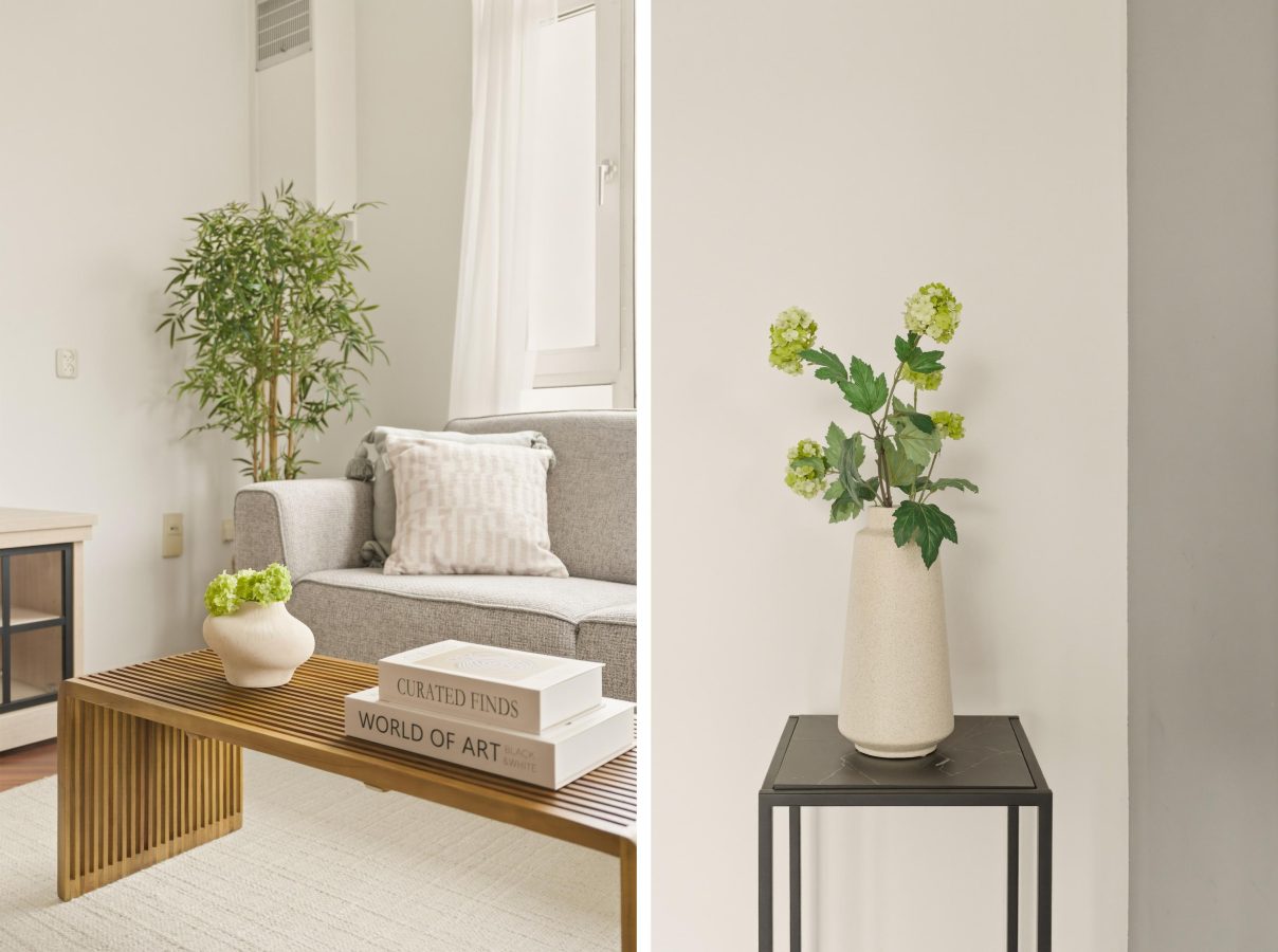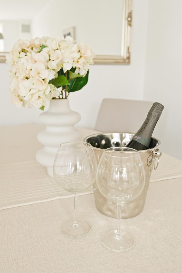 At the front, you will find the bright and spacious living room, offering ample space for both a generous seating area and a large dining table for entertaining. The south-facing balcony invites you to enjoy the sun and the open views. The second bedroom is also located at the front and is perfect as a home office, guest room, or child’s bedroom. The spacious, fully equipped kitchen offers plenty of storage and is fitted with all modern conveniences.