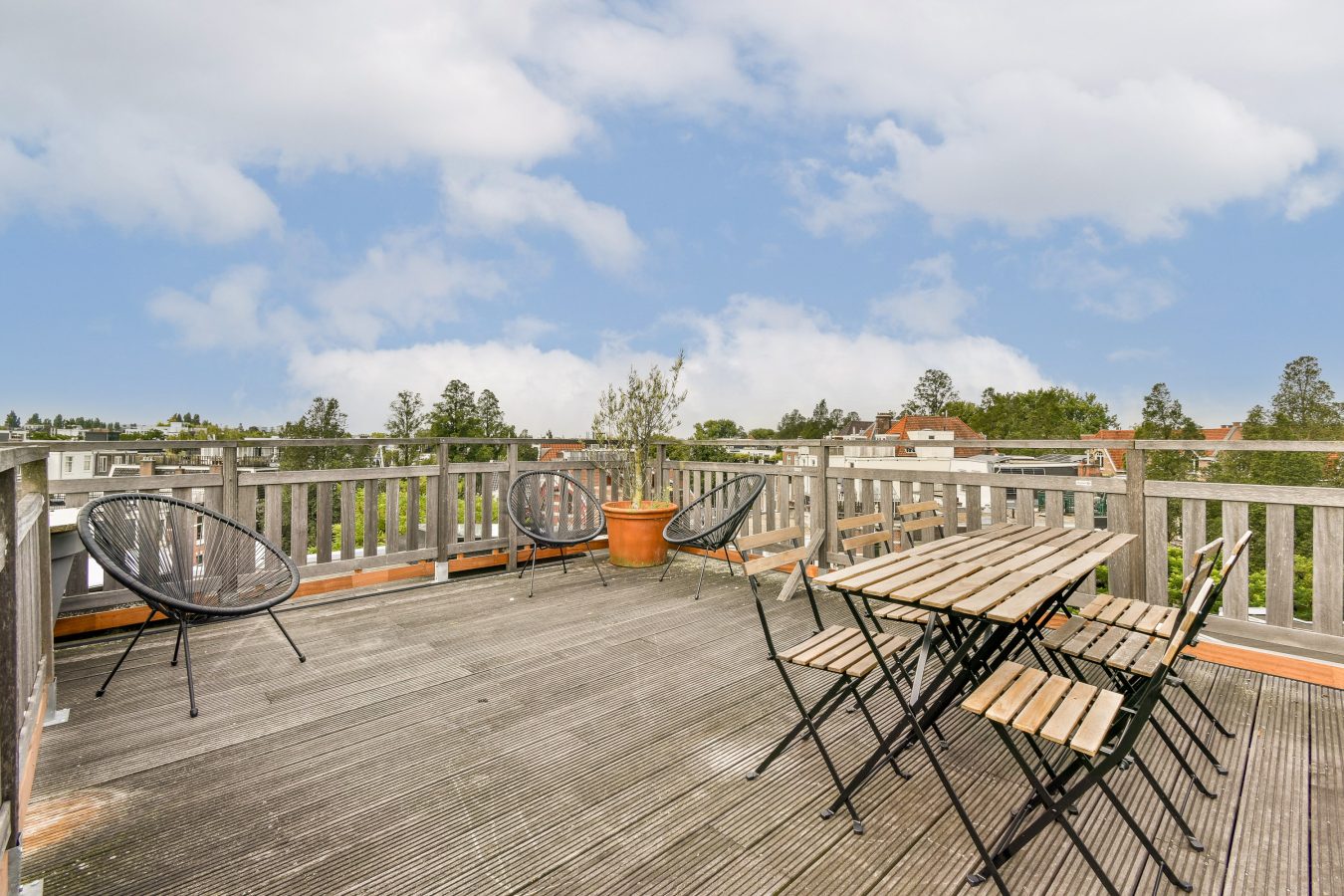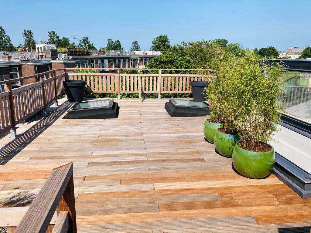 This exceptionally well-located duplex apartment of approximately 125 m² features two balconies, a spacious roof terrace, and no less than four bedrooms and two bathrooms. It is prepared to install an elevator, making this property even more appealing. Situated on the square overlooking Cornelis Schuytstraat, it’s an ideal location, sheltered yet prominent. And just a stone’s throw from the best shops, restaurants, and Vondelpark!