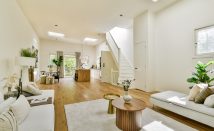 The spacious hallway leads to the two front bedrooms, the second bathroom with a shower and sink, and a separate toilet.