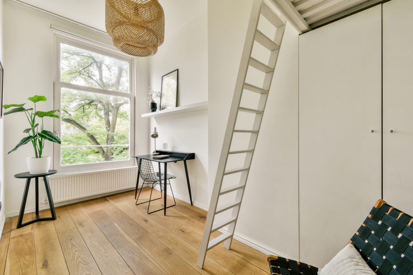 The apartment occupies the second and third floors of this characteristic building, built in 1909 with a chalet façade. A fun fact: Johannes Esser (Leiden 1877-Chicago 1946) lived here, the world’s first plastic surgeon specializing in facial skin transplants, a chess champion, and a prominent art collector.
