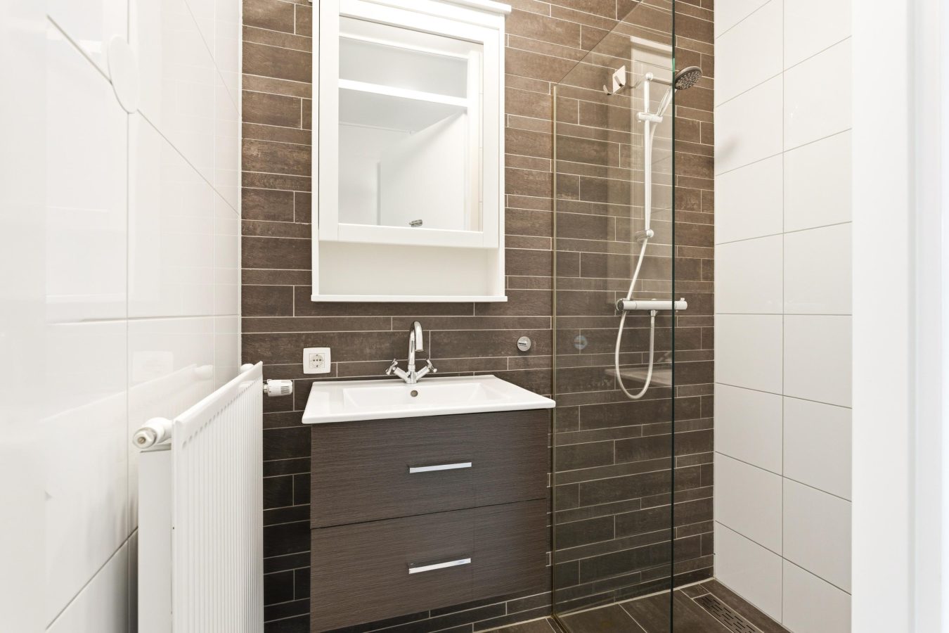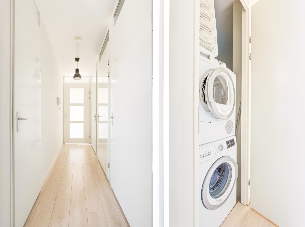 De slaapkamer biedt voldoende kastruimte en de luxe badkamer is uitgerust met een inloopdouche en wastafelmeubel. Daarnaast is er een separaat toilet en een wasruimte aanwezig. Het appartement is strak afgewerkt en voorzien van vloerverwarming, wat zorgt voor extra comfort.